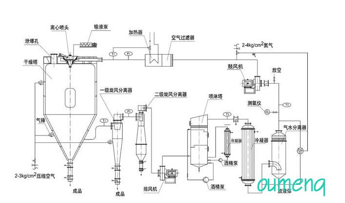 Closed cycle spray dryer has been mature and applied to ethanol,acetone,hexane,Made of gas oil and other organic solvents in suspension,Inert gas(Or Gaseous nitrogen)Closed loop spray drying process for products as drying medium. The whole process is free of oxidation,Media recycling,Noble gas(Or Gaseous nitrogen)Recyclable. Closed loop system designed for the recovery of organic solvent,System explosion-proof control requirements are extremely high,System automation performance is extremely high,GMPDemanding. Commonly used in precision ceramics, pharmaceuticals, battery materials, cemented carbide(Wc.Fe)Spray drying of powder.